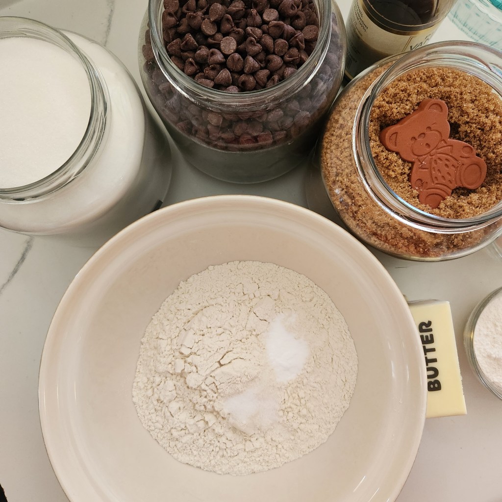 - In a medium bowl, whisk together the dry ingredients, flour, baking soda, and salt.